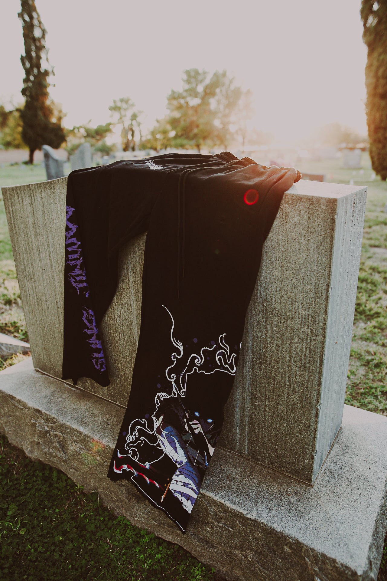 Sung Jinwoo embodies dominance and transformation. The rise from nothing to everything. His presence on these pants represents growth through struggle and power through patience. The artwork captures him in full control, channeling shadow energy that mirrors the dark, raw aesthetic of the Cutoff Project. Built for those who move with quiet confidence and command attention without saying a word. Raw edges, wide cut, and heavy comfort that moves with you. Designed for those who like their fit loose, baggy, and built to last.